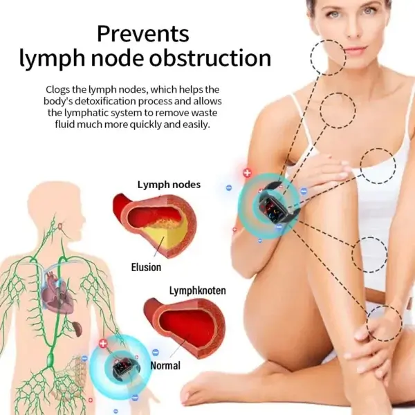 The bracelet uses both far infrared and ultrasonic technologies. These two technologies work together to dissolve stubborn fat, regulate blood sugar levels, promote general circulation, improve lymph circulation, reduce swelling and detoxify the entire body.